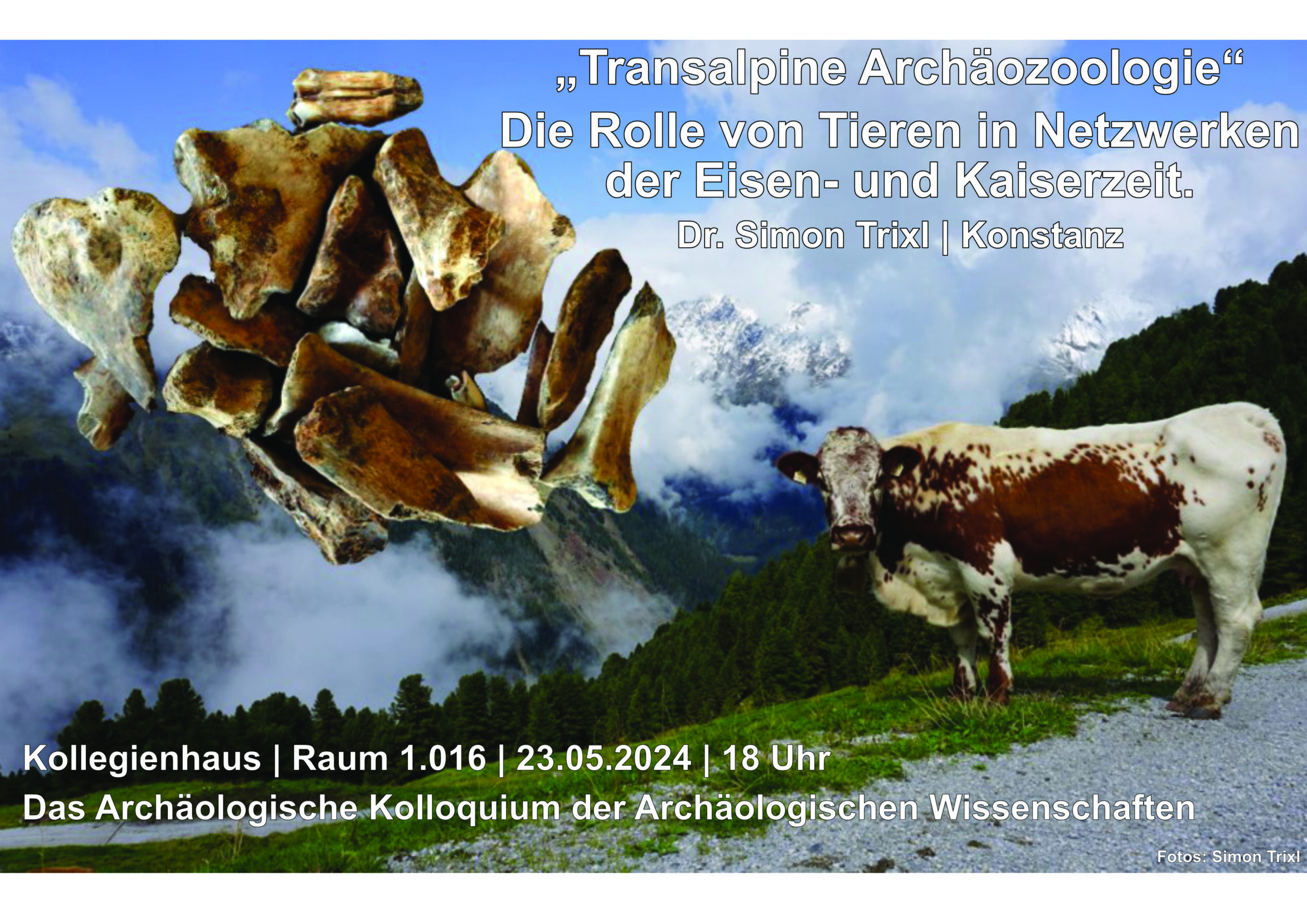 Am 23.05.2024 dürfen wir Sie herzlich zum nächsten Termin des Archäologischen Kolloquium im Sommersemester 2024 im Kollegienhaus, Raum 1.016 einladen. Um 18:00 Uhr c.t. spricht Herr Dr. Simon Trixl (Konstanz) zu dem Thema: „Transalpine Archäozoologie“ Die Rolle von Tieren in Netzwerken der Eisen- und Kaiserzeit.