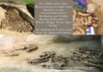 Am kommenden Donnerstag, den 03.07.2025, findet das Archäologische Kolloquium statt. Wir freuen uns über einen Vortrag von Dr. Katharina Fuchs und Prof. Dr. Martin Furholt zum Thema „Ein 7000 Jahre alter Massenfund schädelloser Skelette in der frühneolithischen Siedlung von Vráble (Südwestslowakei) – Ritual, Magie, Krise oder Krieg?“. Der Vortrag ist im Kollegienhaus, Raum 0.011, um 18 Uhr c.t.. Herzliche Einladung!